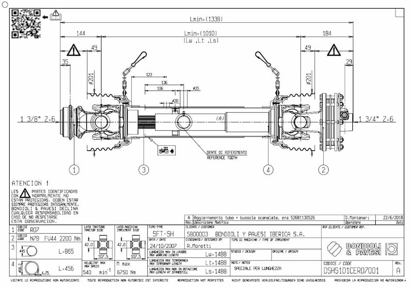 Características técnicas: Toma de Fuerza Rotovator Embrague 4 Discos